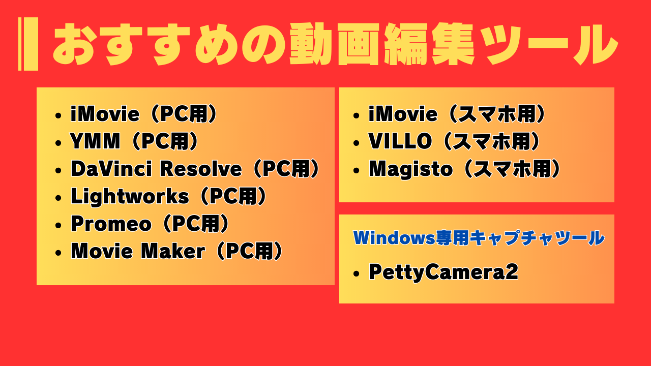 考察系動画であれば、こちらのリストから無料ツールで編集は十分コト足ります。