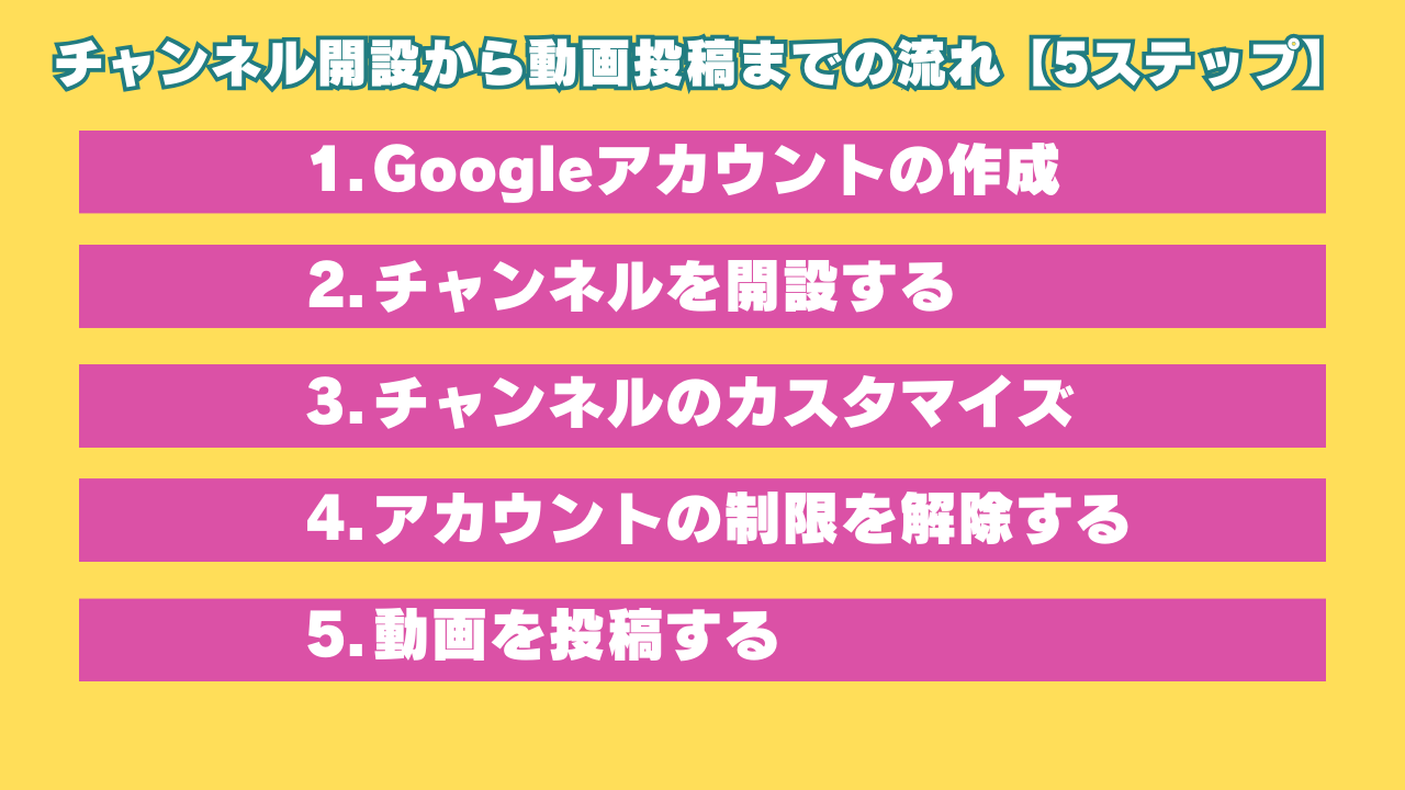 チャンネル開設から動画投稿までの流れ【5ステップ】