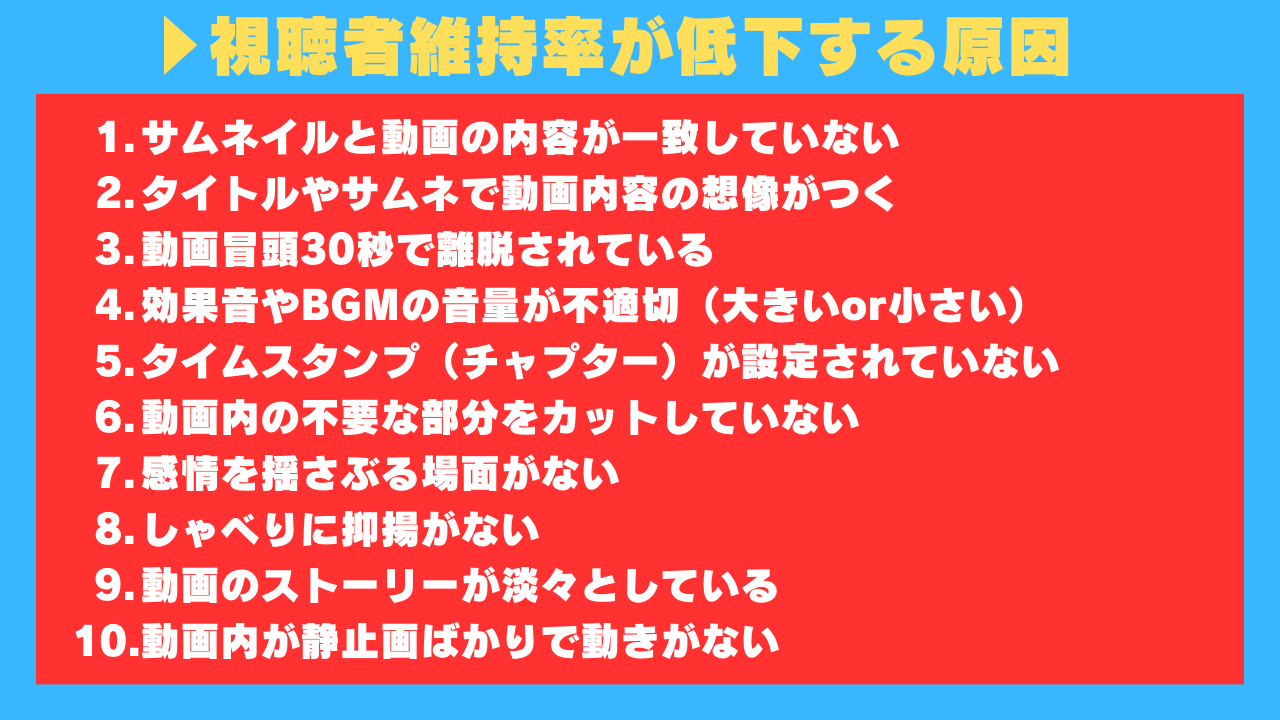 YouTubeで視聴者数が伸びない原因は、「サムネイル」「動画タイトル」「インプレッション数」の3つしかありません。